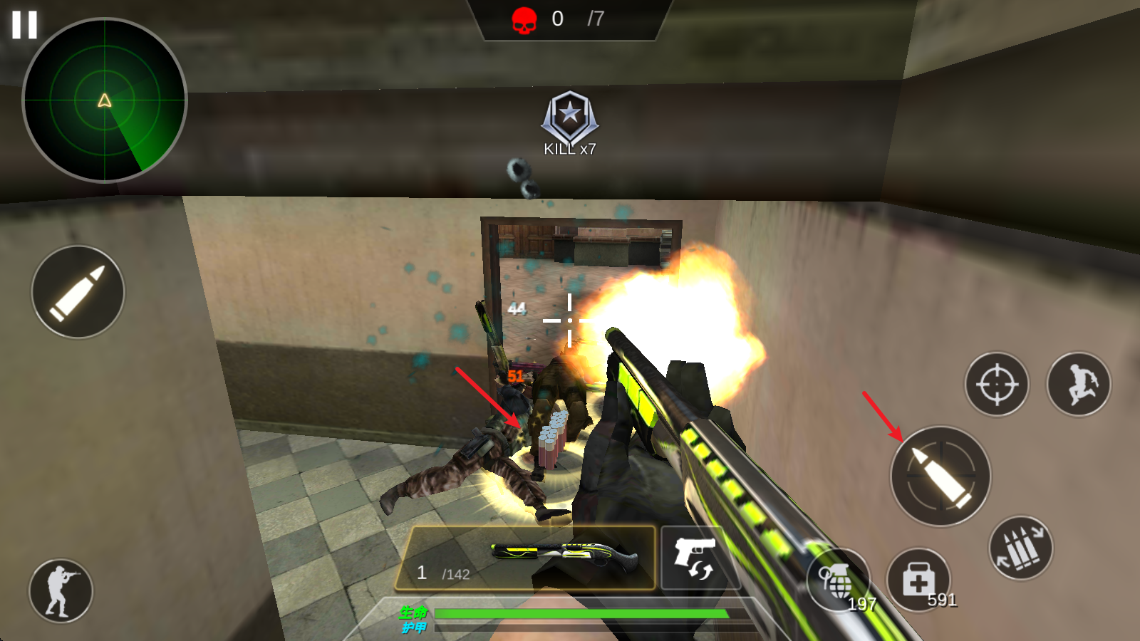 3、瞄准敌人后,可以点击右侧按钮射击,击败敌人还会掉落道具。