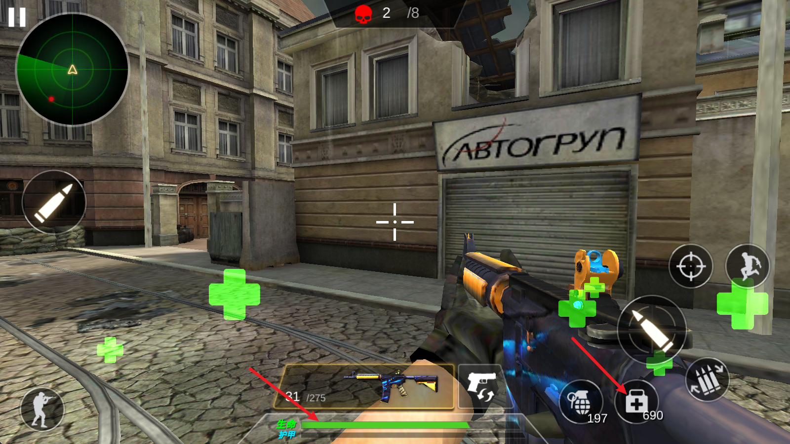 6、当血量不足的时候,点击右侧的医疗包来恢复。