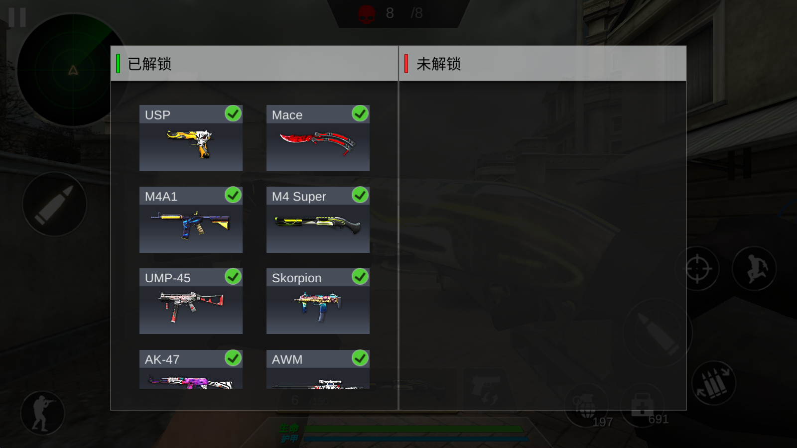 4、点击下方的枪械解开切换已有的武器。