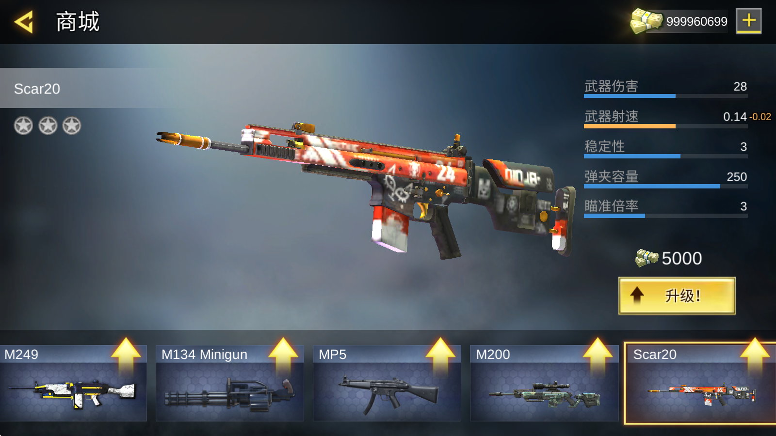 2、进入后即可解锁各种武器,并点击武器进行升级。