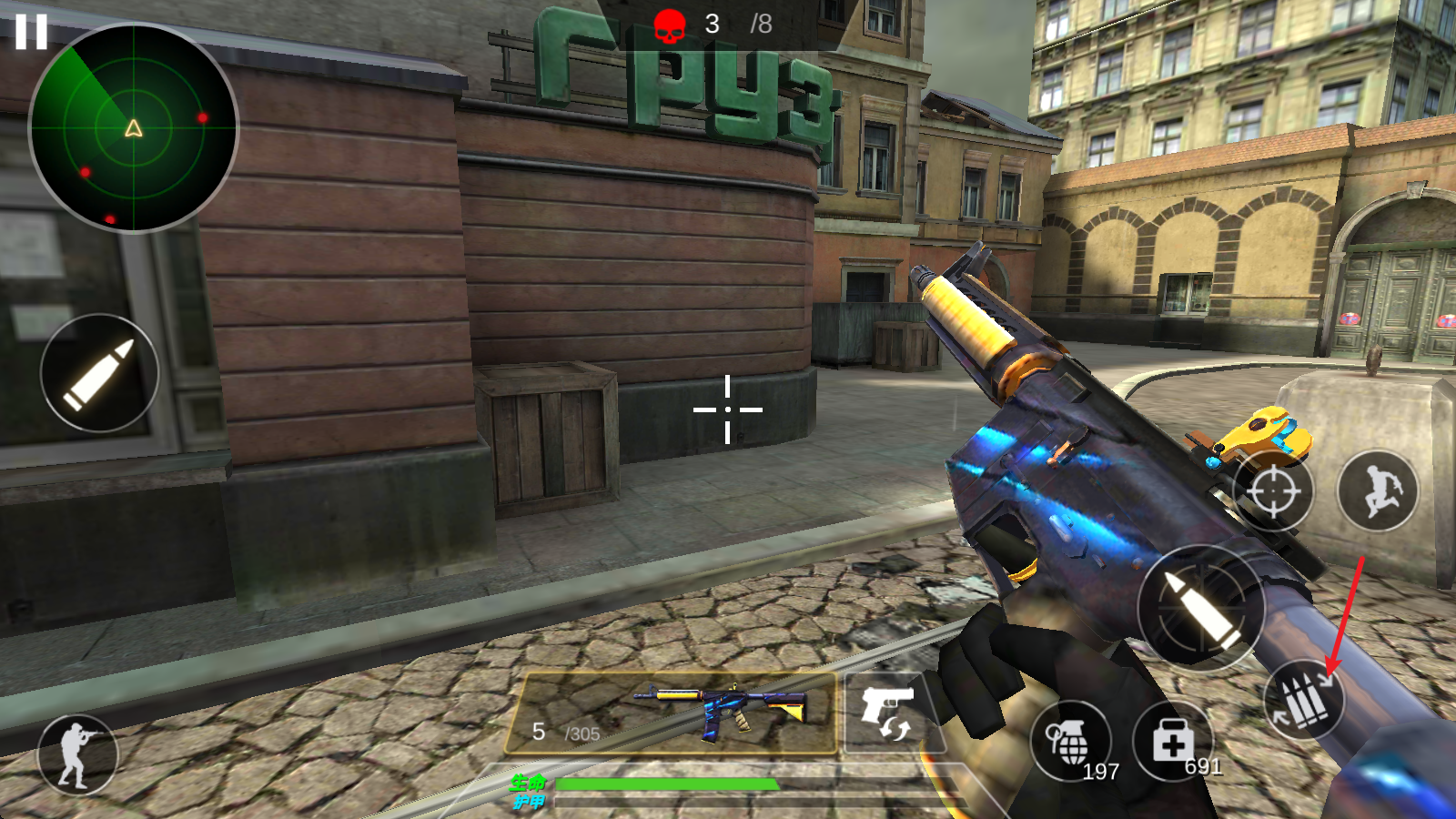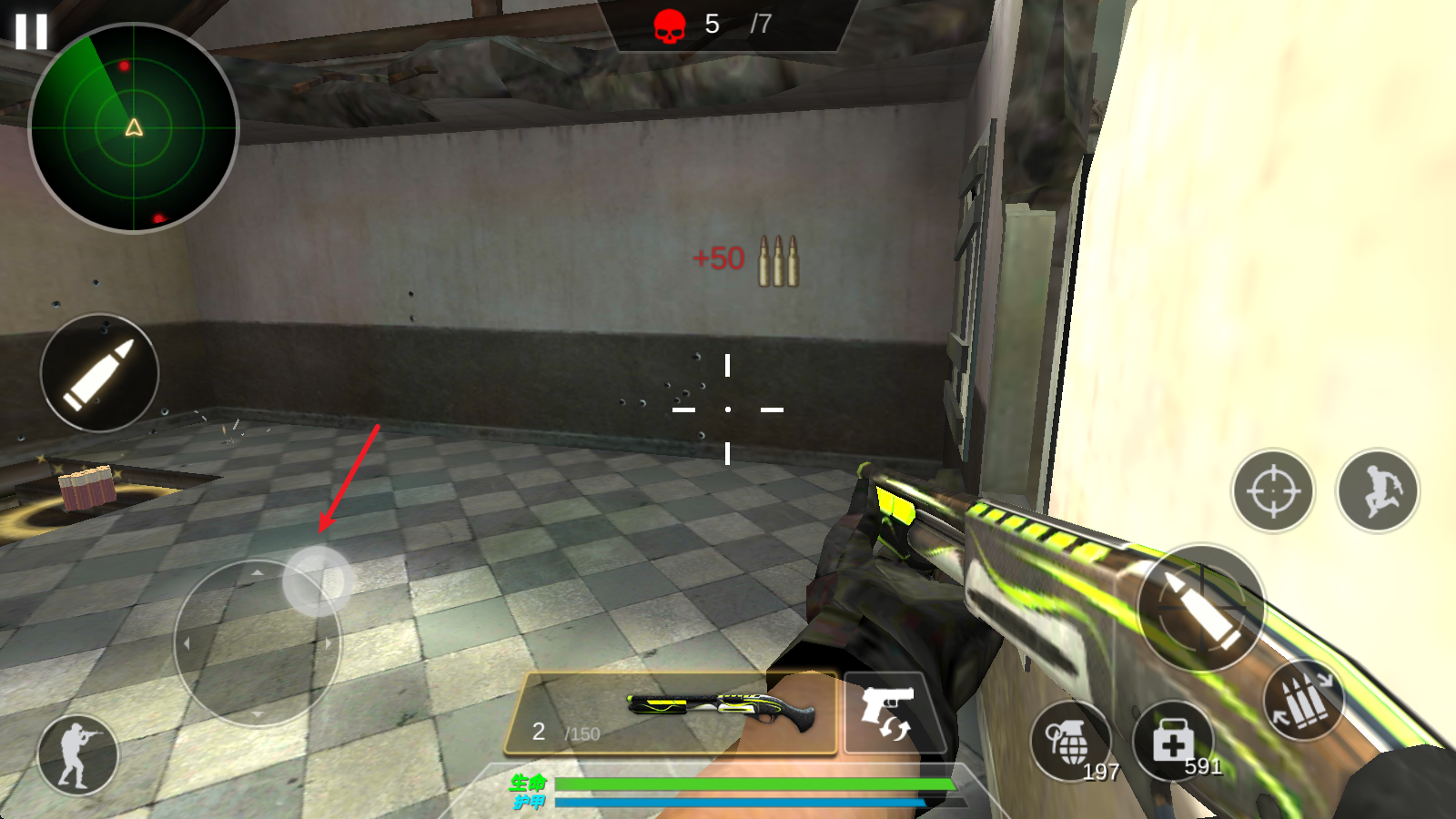 5、当子弹不足之后,点击右下角按钮即可更换弹夹。