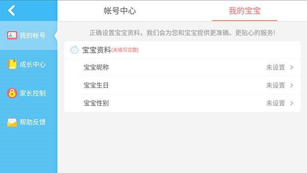 3、登录账号,设置宝宝资料,为您和宝宝提供更准确、更贴心的服务;