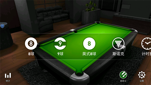 1、安装好游戏之后打开,进入到游戏主界面,可以选择不同的台球玩法模式;