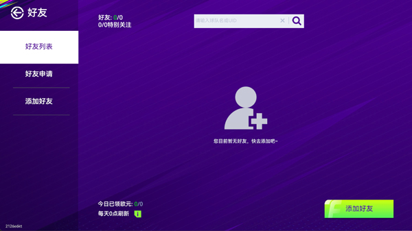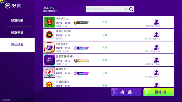 2、玩家可选择通过球队名和UID来添加好友;