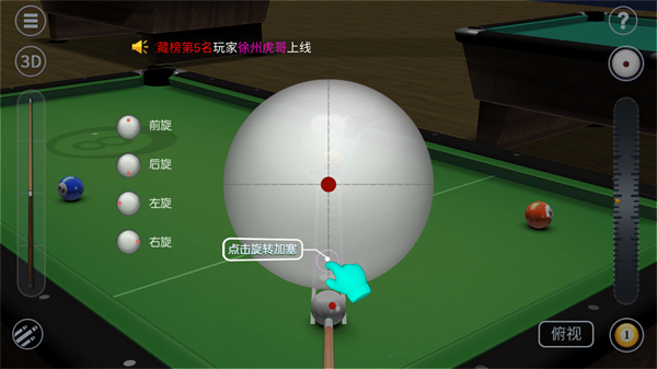 4、点击球的任意位置可以实现旋转加塞。
