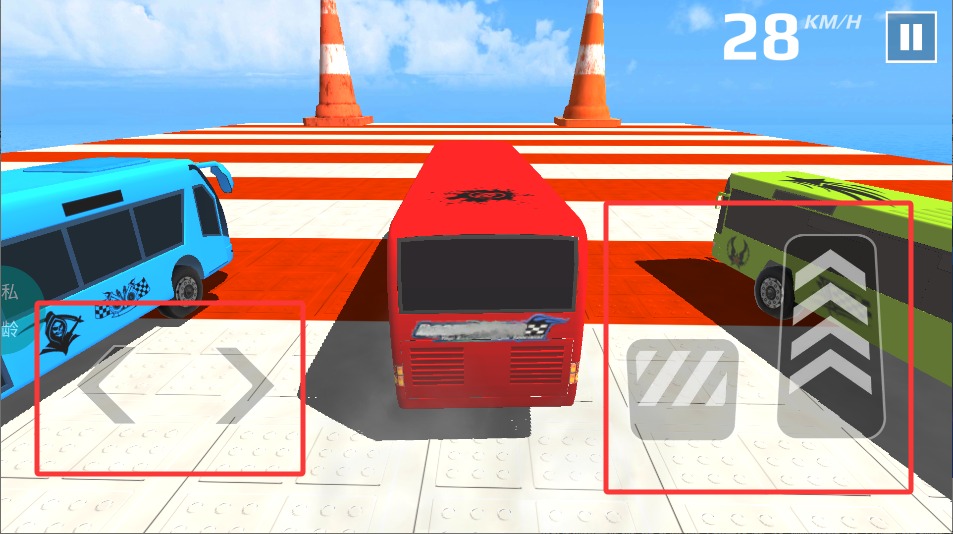 3、左侧虚拟摇杆控制车辆方向移动,右侧按键分别负责刹车和加速,灵活操作避开障碍。