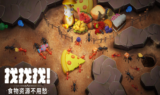 你可与其他蚁国统领,结成联盟,并肩作战,挑战黄蜘蛛外敌,征服果实树,把蚁道蚁室扩张占领户外每个角落,称霸野外。