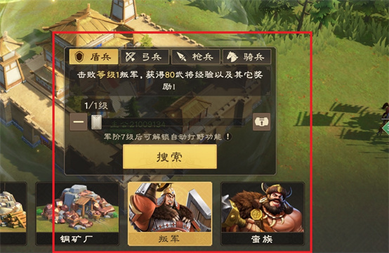 2、武将通过刷叛军练级,提高部队带兵量(消耗精力获取经验,刷叛军是前期武将经验的唯一获取渠道)。