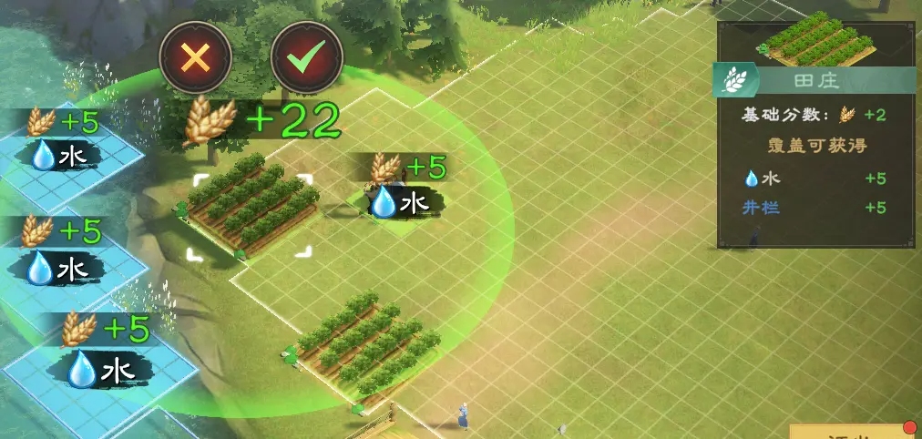 1、探索大地图会获得不少民生建筑,可以在外城摆放这些建筑。每个建筑都能覆盖一定的范围,范围内有特定建筑就可以获得额外的分数。