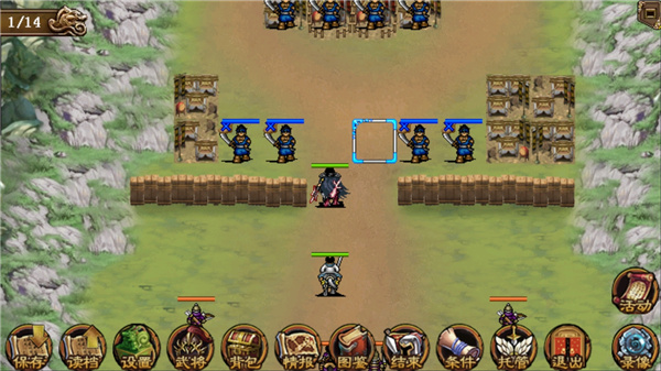 14、单张宝,南边(太平要术)回合数25 打法:注意三回合内必须要杀完敌人的远程,不然我们全体不能移动且不能解,杀不完的话建议换关。