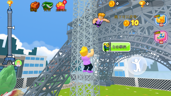 2、点击自动攀爬获取丰富的奖励,点击跳跃即可获取丰富的金币。