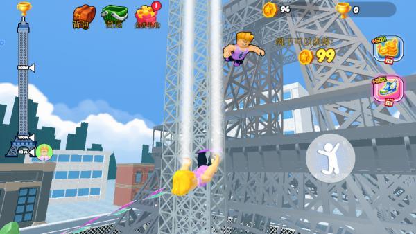 4、快速的攀爬获取丰富的奖励,升级角色等级,自由的开始闯关。