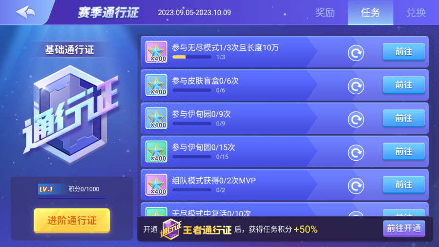 8、进入赛季通行证,点击【任务】,这里会有很多的任务需要玩家完成,完成以后可以获得相应的奖励,感兴趣的话快来体验吧~