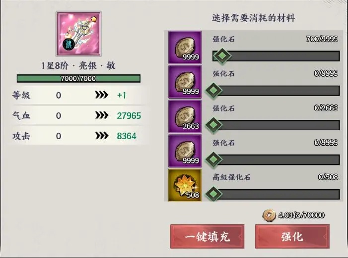 而升级需要用到的材料:金币、武将修为、突破晶石