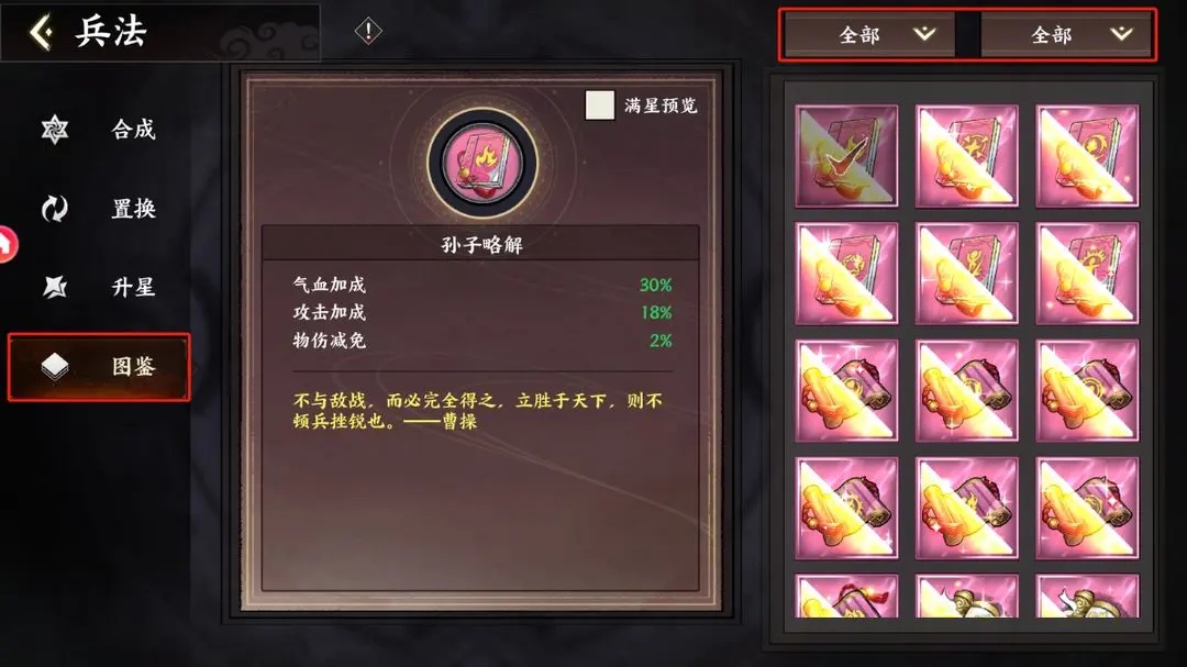 PS:可以通过兵法的图鉴了解自己培养的武将更适合哪个兵法哦~