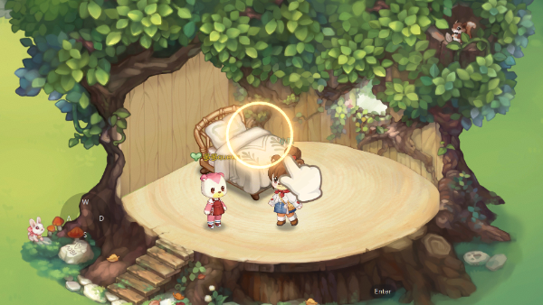 10、完成以上操作之后,你将会在这个岛有一间属于自己的小树屋,里面还有一张小床,点击它即可上床入睡。