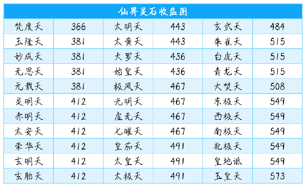 ①仙界:刷图首选,仙界灵石收益相比凡间来说有很大增幅,基本相当于凡间三倍灵石收益(百轮内)同时每提升一个星级灵石收益都会有很大增长幅度。