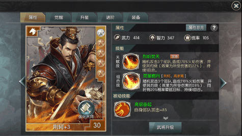高渐离,同样是一各橙将,他的属性和技能较之其他橙将其实并没有太多差别,而之所以推荐他,不推荐其他的,则是因为他可以和荆轲一起激活组合技,焚星燃月,跟上面的红将组合技相比,打击目标只有三个,并且伤害也低了不少,但也算不错了,毕竟红将很难培养起来