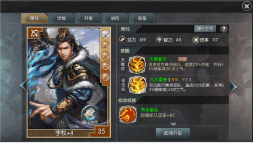 历史上有名的将领!游戏中是一个攻击型武将,但他却是呆在后排的,因为他带的是弓兵,他的技能是攻击对方的横排部队,可以和王翦激活组合技,如果能够获得王翦的话也不妨一起上阵,对于阵容打搭配,还是要随机应变,最适合你的才是最好的
