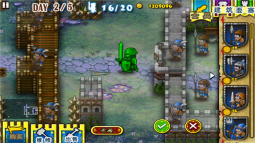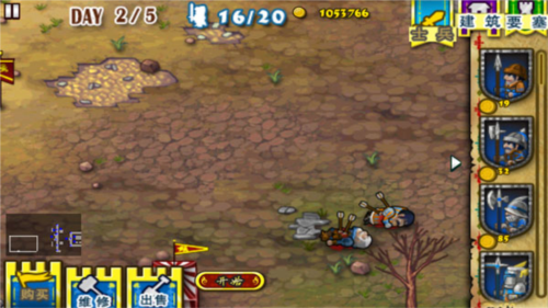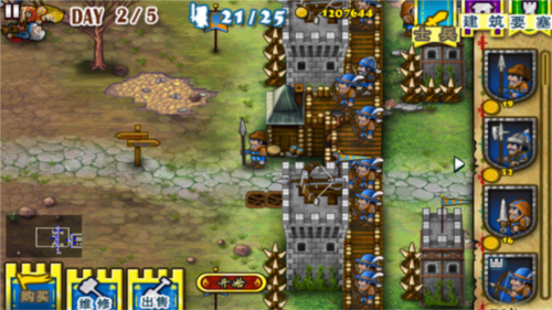 在一大批敌人的肆虐后,有些防卫建筑会出现损坏,玩家可以在下一次战斗前对其进行维修。维修需要消耗金币,但会比直接购买新的设备来的便宜。如果玩家对自己摆放的防御设备不满意,可以将其出售,重新摆放防御设备,玩家对布局的整体控制自由性比较大。除了建筑可以出售,士兵也是可以出售的,与建筑相同,出售获得的金币会比购买时花费的少。玩家对整个游戏布局的自由性分配性还是比较强的。