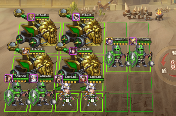 如果对方骑兵和前排较多,可以集中站位,保护后排,并且使用弓兵对骑兵进行克制性攻击。