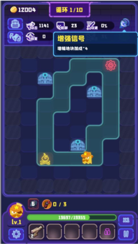 你每个决策都影响着游戏进展。关卡需要玩家通关十个循环,每个循环结束都会休整来放置地块,技能和地块都是随机刷出,计划选择更有利的技能搭配,规划地块怎样合成摆放最大化增幅角色,都是策略的一环,你的每个选择都会影响下个循环的表现。
