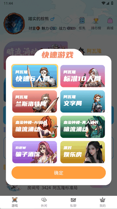 2、选择游戏类型点击确定即可