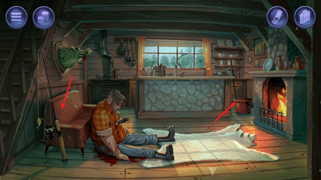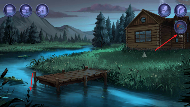 1、点击场景中的鱼竿、拖把,将其收集起来。