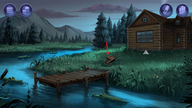 5、然后到门外,将带着尸体的独轮车点击到下方的鳄鱼处。