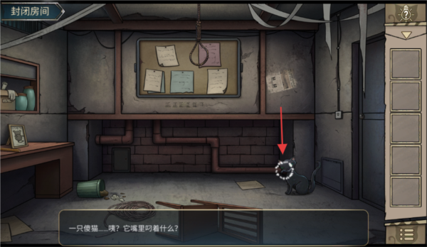 3、在封闭房间,互动黑猫,查看它嘴里物品,收集线索推进解谜。