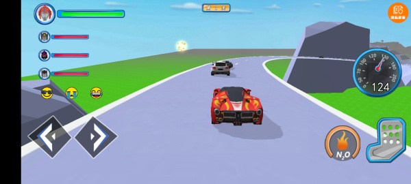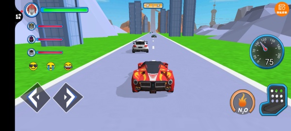 1、进入游戏,驾驶赛车开始竞速,一路冲刺冒险,甩开沿路的车辆。