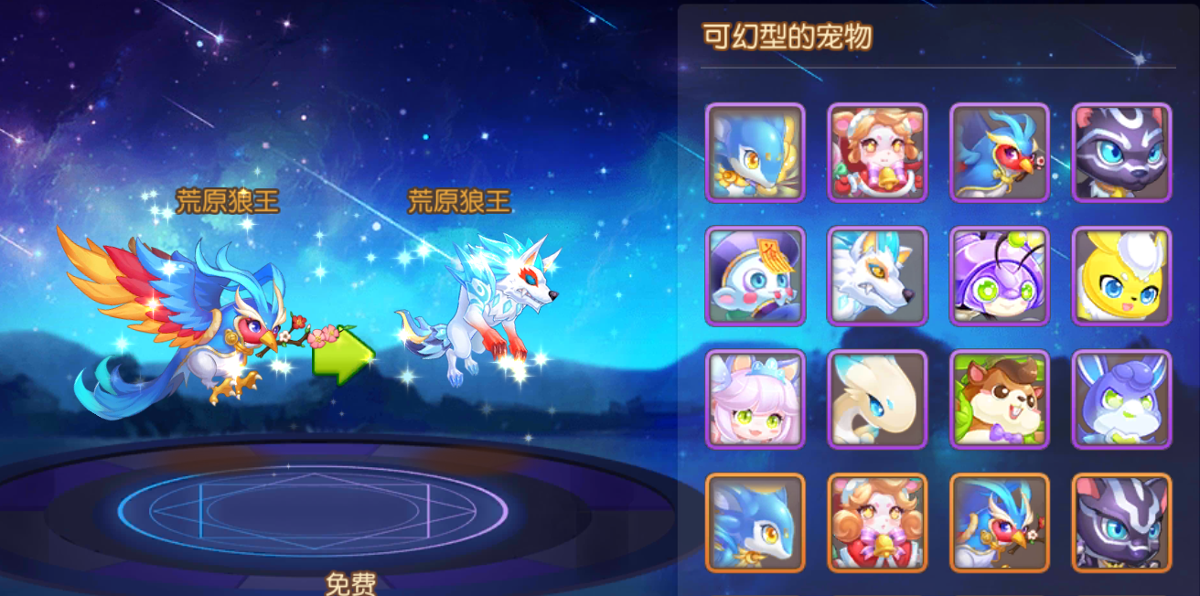 宠物还可以进行幻形,重生,回收,幻形顾名思义可以通过消耗宠物幻形药水,变成其他宠物的模样,如果看久了幻形之后的模样,点击幻形后重现选择原来的宠物即可免费还原。
