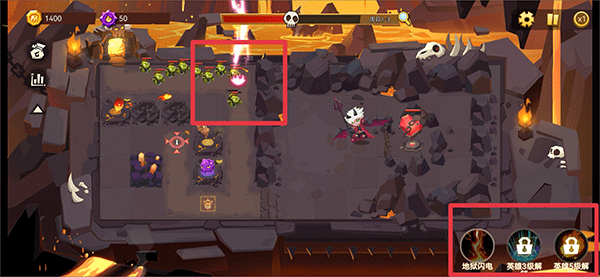 6、随着关卡的解锁,敌人也会越来越强,因此玩家还需要为恶魔心脏和英雄提升等级来增加战斗力,血量,解锁英雄技能等等
