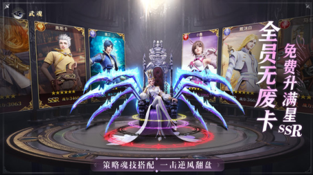 昊天锤免费送,精品魂骨免费拿,登录送50连抽,全员无废卡,免费升满星SSR!