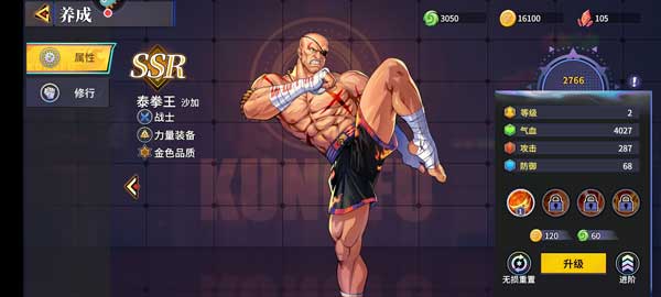 6、武道家它主要是用来装卸武器服装和养成等,根据角色的属性和修行来将卡牌的等级不断地提高。