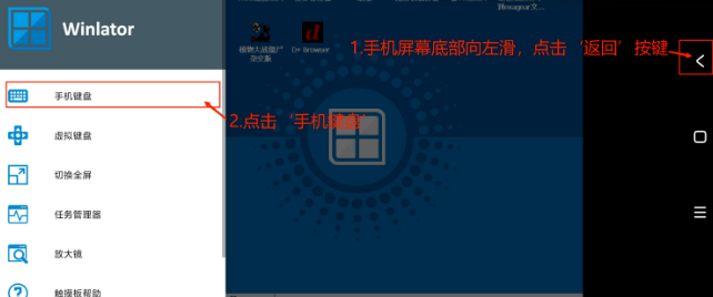 15.手机屏幕底部向左滑,点击‘返回’按键后再点击‘手机键盘’