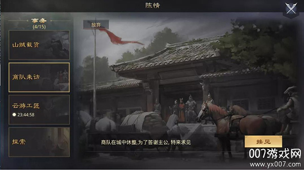 在每日的陈情之中,玩家除了会遇到不同的工匠,并通过他们来帮助自己提升宝物之外,还将会有探索以及营救商队等新类型的陈情。在这些陈情之中,玩家可能获得培养宝物所需的材料,也有可能触发新的陈情事务。