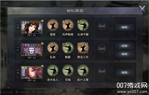 战法:XP风声鹤唳+XP众谋不懈;地利