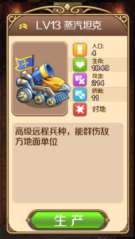1、用户点击【兵营】后出现生产界面
