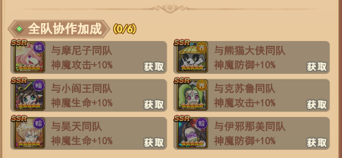 从阵容合理性搭配来看,悟空属于刺客,所以在搭配上要考虑有控制、治疗、前排和群体输出。从技能上来看需要技能含有诅咒和创伤的神魔进行组合。而游戏中常见含有诅咒技能的有:小阎王(防御)、昊天(治疗)和伊邪那美(控制)、魔尼子(群体输出)。光系有熊猫(防御)和嫦娥(治疗)三系只有水系的SR卡波塞冬(防御),所以大家日常游戏中可以结合自己的本体数量选择一下搭配。