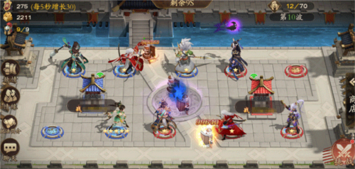 2、购买的武将可随时拖放到自身阵营的塔座之中,进行自动战斗。自身队伍战力越高,合战中的武将属性越高
