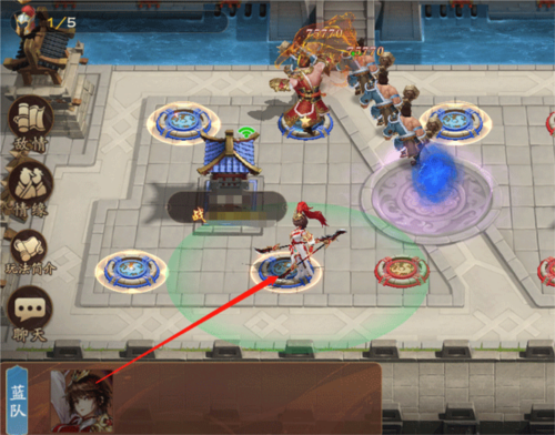 3、进入战斗后,双方分为红蓝两方,若单人进行游戏,则只会存在一方阵营。每个召唤师有归属于自身阵营的塔座,只可在自身塔座中上阵英雄