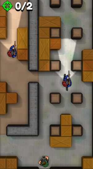 上帝视角,点击屏幕选择刺客移动路径,利用掩体等躲避灯光,击杀获取钻石解锁新刺客,基本就是这款游戏的主体。
