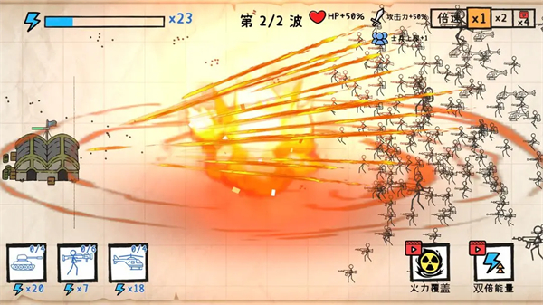 纸上战争重铸文明游戏是一款趣味十足的策略塔防类手游,作业本上一场纸上战争已经拉开序幕。作为指挥官,你需要有策略地派遣士兵来抵御敌军的入侵,如何才能在合理使用体力值的情况下派出克制兵种击败敌军?这是门艺术。如果战局处于劣势,不要犹豫,迅速呼叫总部的友军支援或者火力覆盖吧!游戏内提供了步兵、炮兵、狙击手、直升机、坦克、飞机等多种不同的兵种,不同的兵种的属性各异,还拥有不同的克制关系,因此玩家在战斗过程中可以根据敌军的排兵布阵进行针对性的派遣,以此轻松制胜,玩起来十分具有策略性,有兴趣的小伙伴可以下载尝试一番!
