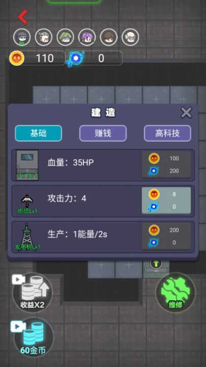 3、升级炮塔提高你的战力,不断消灭凶鬼保护宿舍中的人类。