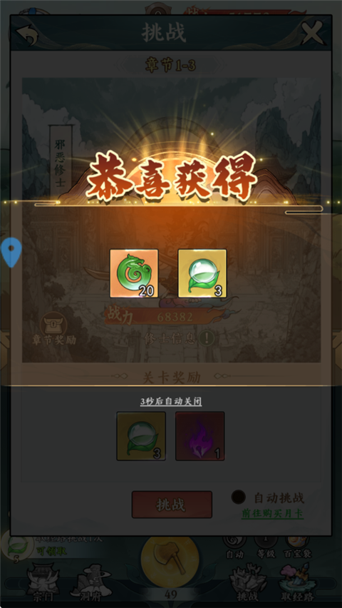 2、除了刺激的开箱子,游戏还设计了丰富的策略玩法。合理搭配队伍阵容,根据妖怪特点选择不同的法宝和技能,巧妙利用地形优势,才能在激烈的战斗中脱颖而出。更有神秘的副本挑战、紧张刺激的PVP对战,与其他玩家一决高下,争夺三界最强取经人的称号!