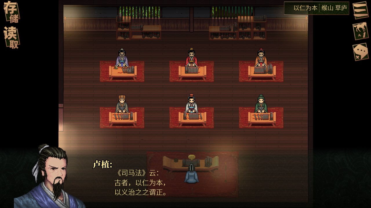 这里完成了卢植先生的小课堂剧情之后,就进入了下一个阶段。这里可以选择在院子和NPC自由对话或者直接返回物质内休息。