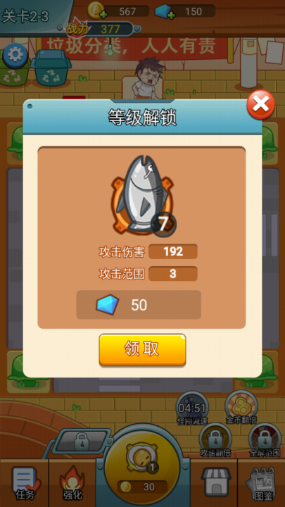 3、玩家需要保护那个女孩,利用空余位置放置道具来消灭人群,炮塔可以进行合成,合成之后会变更高级的炮塔;