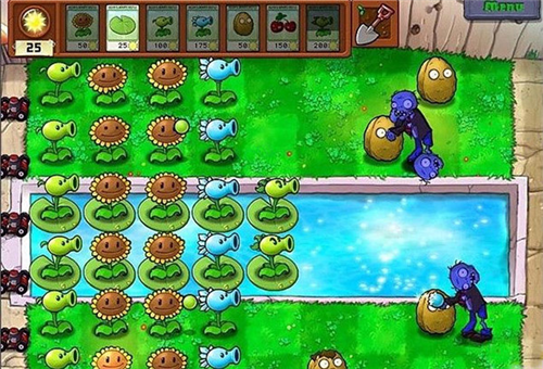4、不要害怕损车。损车是正常情况,选择损车时机是一门技术活。通常前期要避免损车,后期如果出现实在撑不住的情况,就要选择性放弃一排或几排,攒好阳光,车一出去就补好。本条也适用于某些迷你游戏,比如保龄球2。