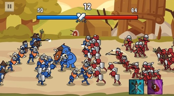 2、以火柴人的题材进行作战,玩家需要运用作战策略的提升让玩家拥有更多的火柴人大军完成对战。